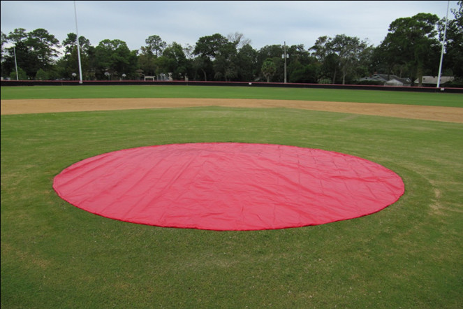 Baseball Mound Cover is a specialized tarp designed to protect the pitcher’s mound on a baseball field from weather-related damage,primarily rain.The pitcher’s mound is one of the most important areas of the field,and any moisture or standing water can make it unsafe for pitchers and cause delays in the game. The mound cover helps prevent water from soaking into the dirt,maintaining the integrity of the mound and allowing for faster field recovery after rain.
